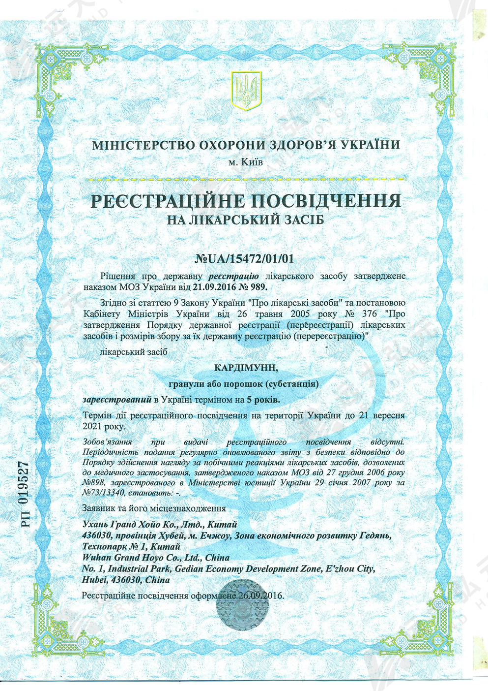 產(chǎn)品烏克蘭注冊證