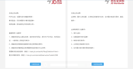 4、選擇類型,國內(nèi)商家選擇“入駐京東主站”、國外商家選擇“入駐京東全球購”