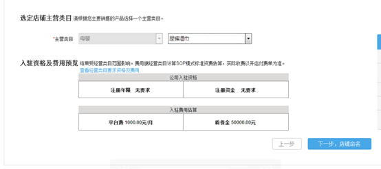 選擇主營二級(jí)類目,點(diǎn)擊下一步店鋪命名